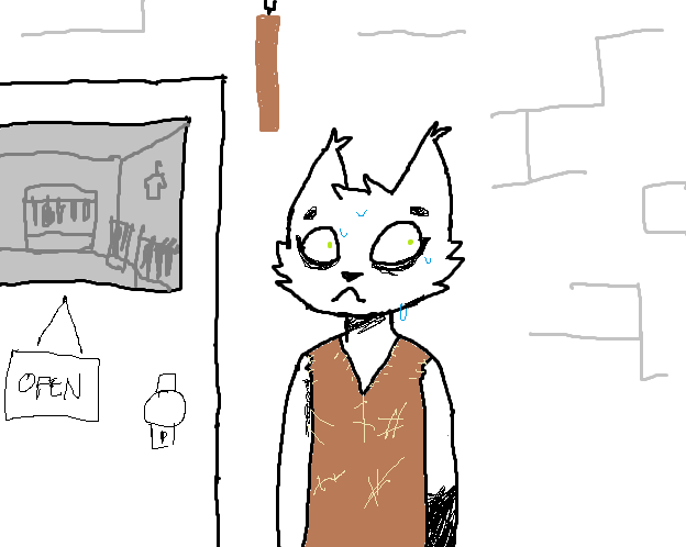 Making your way out the dingy alleyway you've called home for all but 12 hours, you approach the entrance to the clothing store. You really really REALLY hope they have some SBAHJ merch to spare. For free, hopefully. You have no money, but you're sure whomever runs this establishment is a kind, charitable soul. You hope.